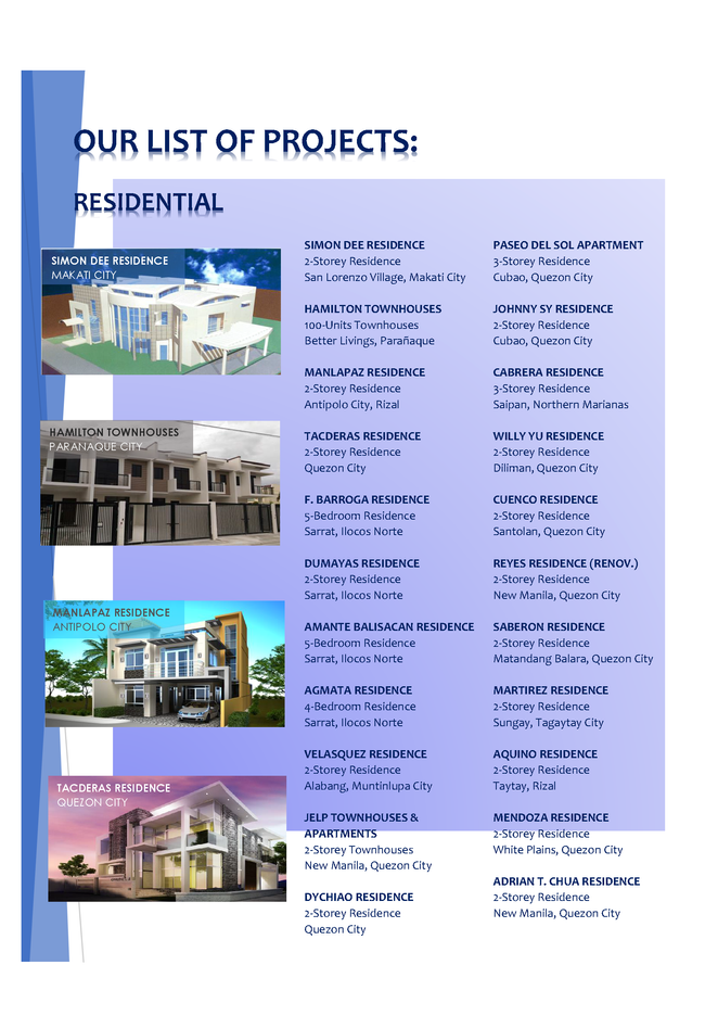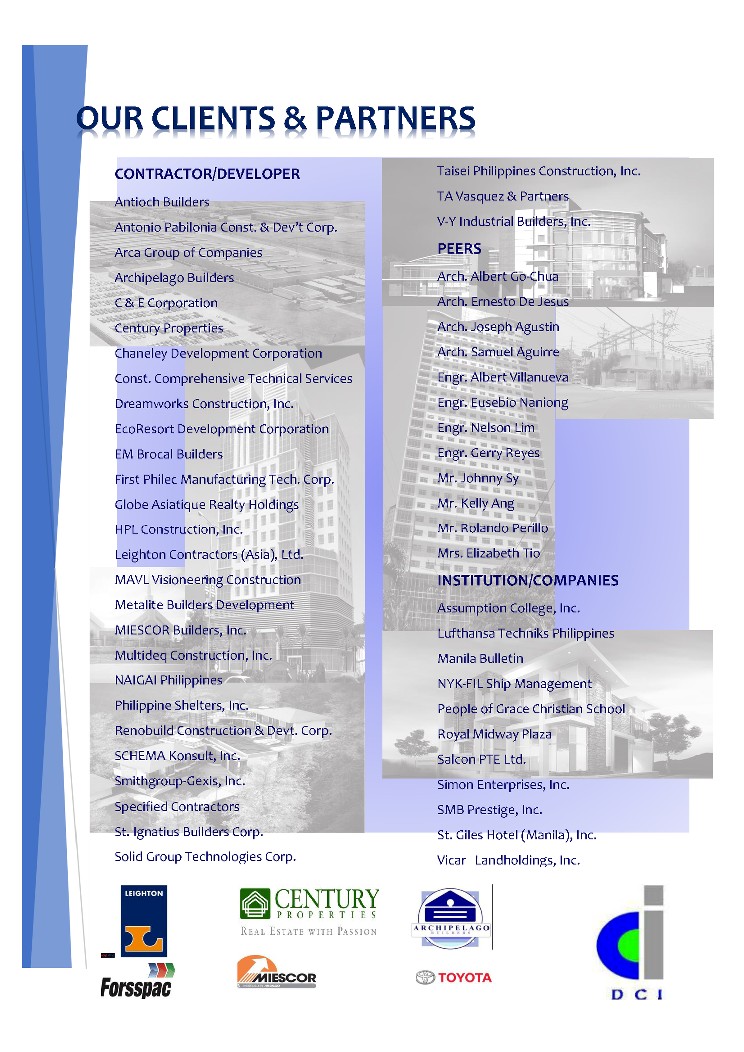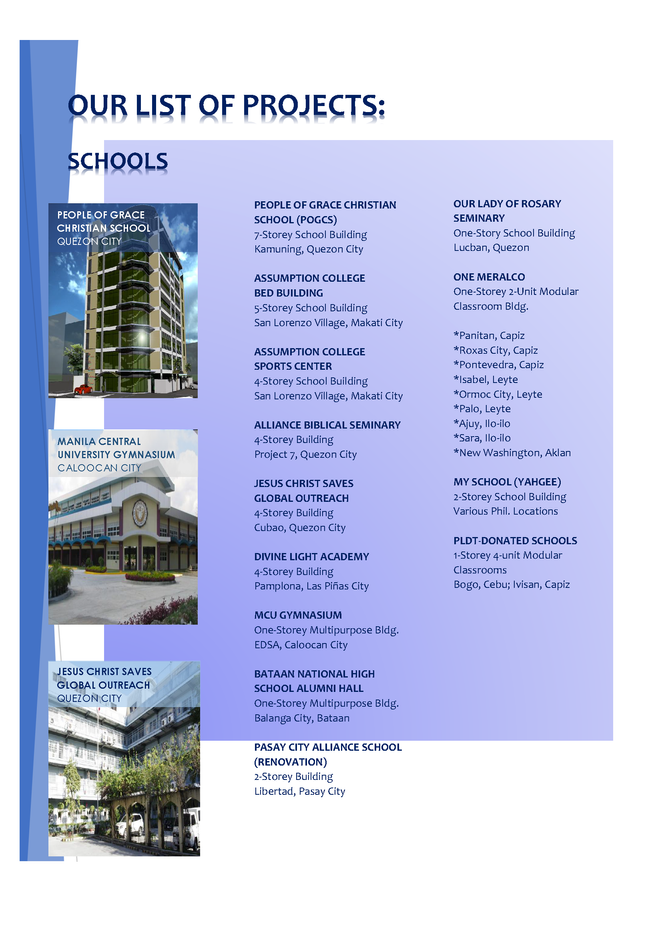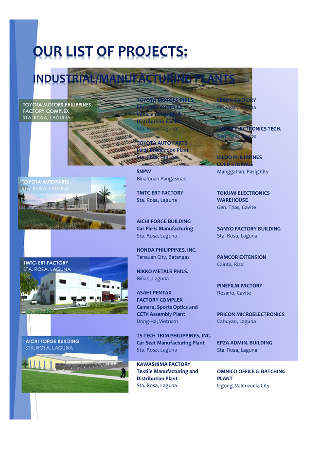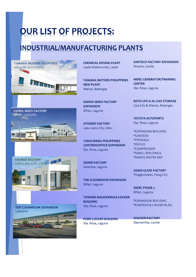 The firm is well versed not only in local design codes but also with international standards as well, since we have done projects in other countries such as Japan, Thailand, Guam, Saipan, Indonesia, Vietnam, Nigeria, Angola and the Middle East.